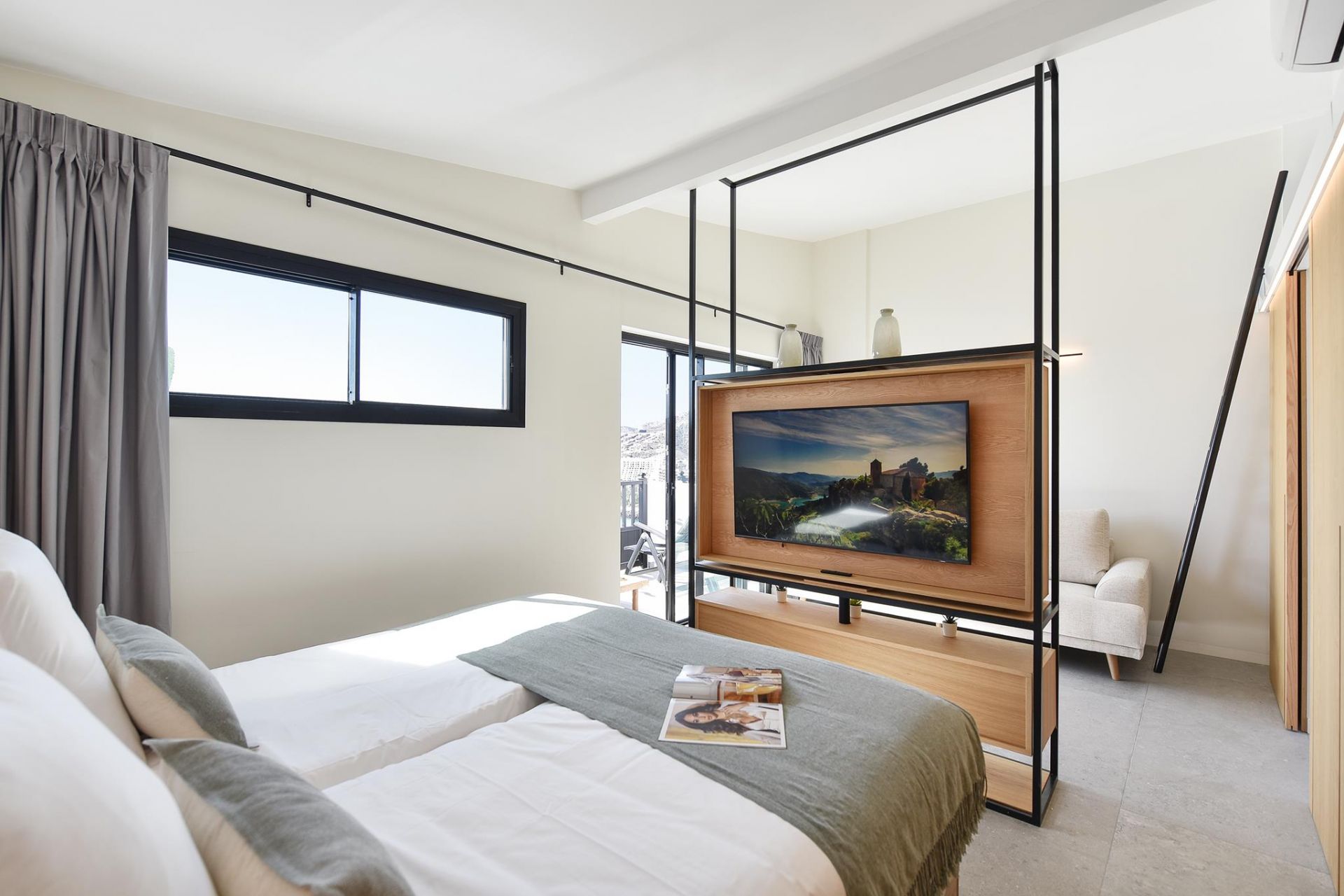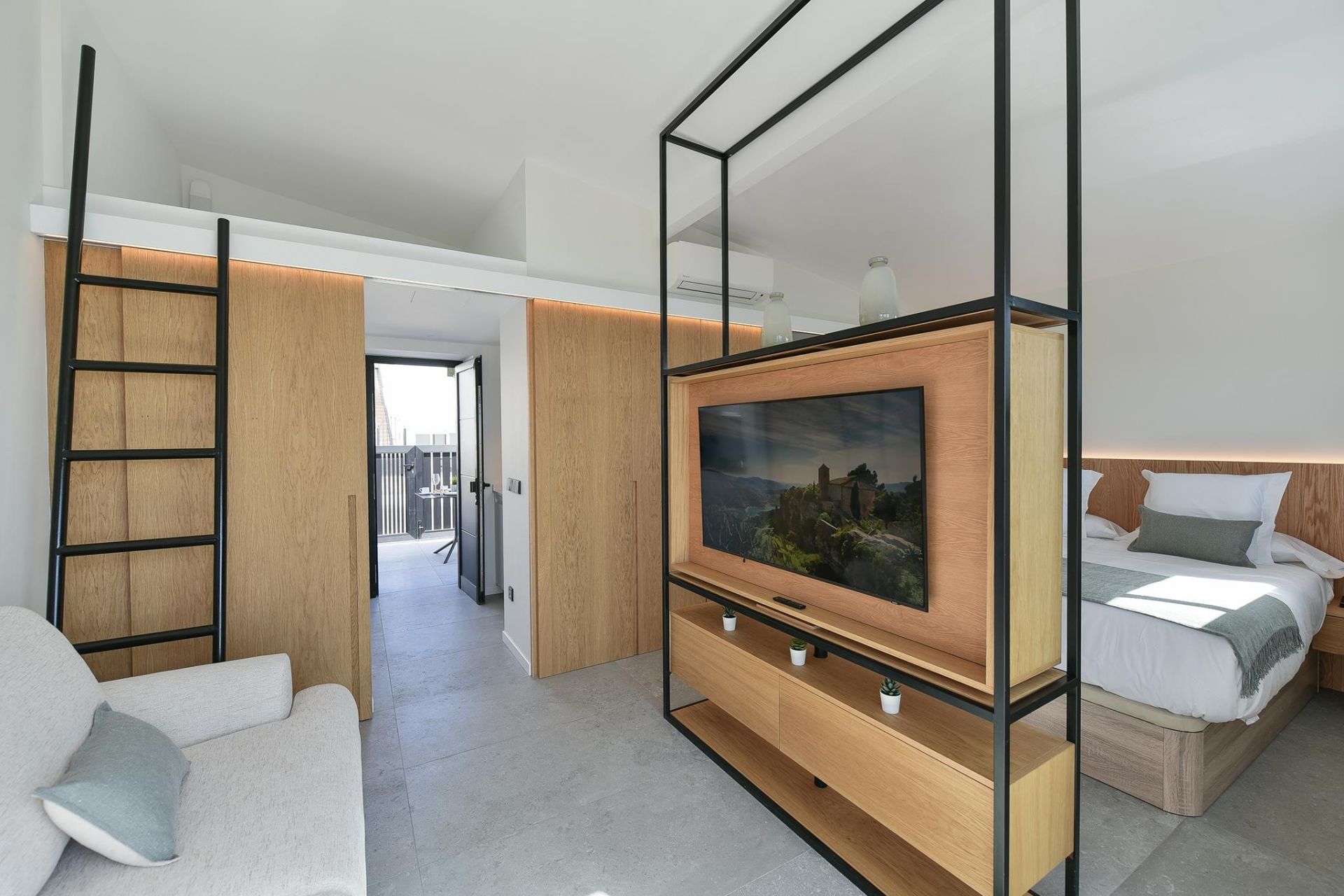 Este estudio ofrece un espacio abierto que combina la zona de estar y la habitación, creando una sensación de amplitud y luminosidad. El diseño moderno y minimalista, recién reformado, refleja un cuidado meticuloso por los detalles y una atención especial al confort del huésped.